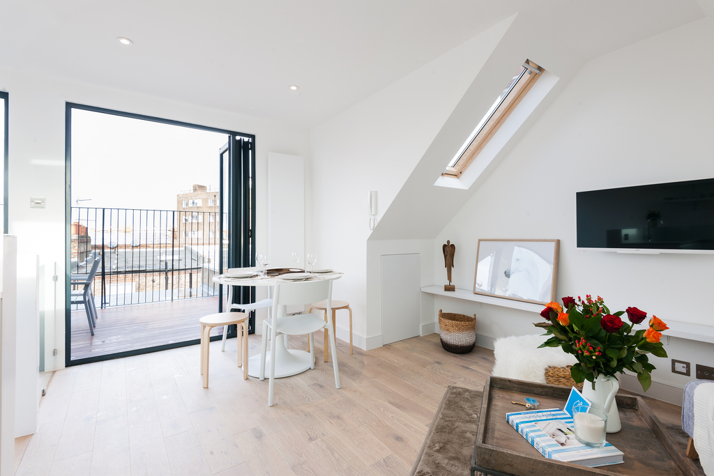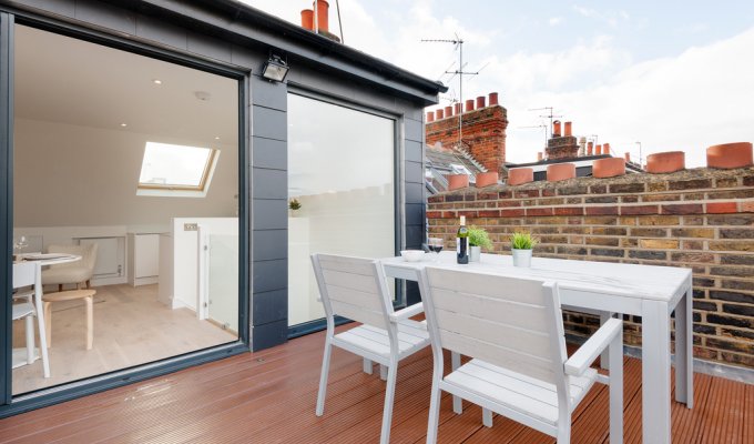 Sur ce niveau supérieur, l'appartement bénéficie également de l'accès à une terrasse privée où vous pourrez profiter du ciel nocturne de Londres à votre propre plaisir.