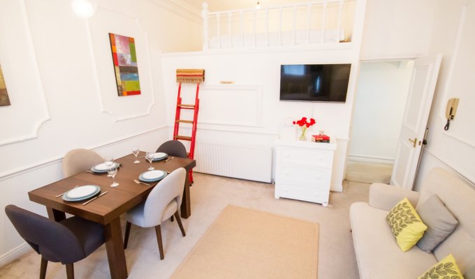 Cet appartement typique de Londres est équipé de tous les équipements modernes tels qu'un téléviseur grand écran et un canapé confortable.