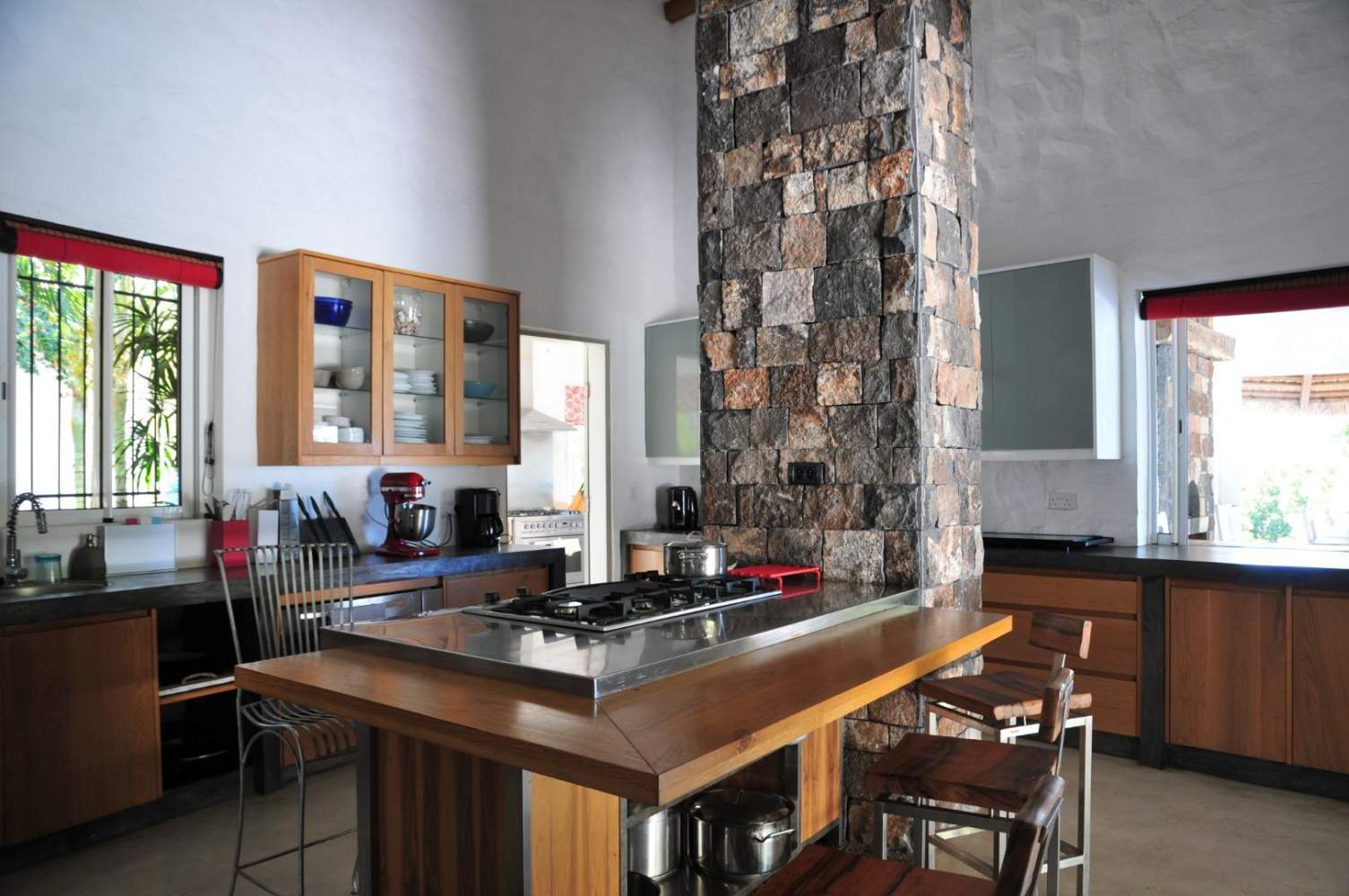 La maison principale est composée de 3 chambres, 3 salles de bain dont 2 en-suite, un salon, espace télévision, salle à manger et deux cuisines dont une cuisine ouverte qui donne sur la piscine, un kiosque et un pool house.