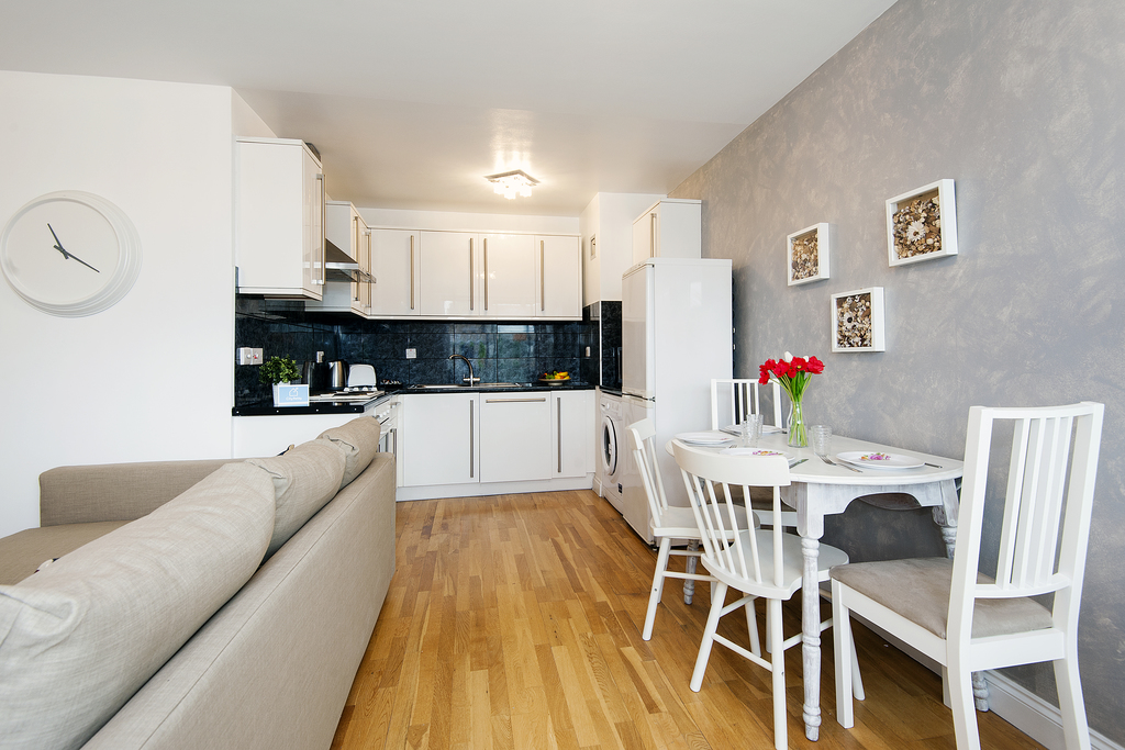 Le salon spacieux audacieusement est idéal pour vous détendre après une longue journée de visites dans cette grande ville. Cet appartement typique de Londres est équipé de toutes les commodités modernes comme un téléviseur grand écran et la télévision par câble.
