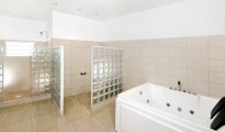 Chambre 2 - La deuxième chambre dispose d'un lit king-size, de la climatisation et d'un ventilateur de plafond. La chambre a une salle de bain avec lavabo et douche.