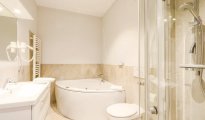 Les quatre chambres séparées sont toutes équipées d'une télévision à écran plat. La spacieuse chambre principale possède sa propre salle de bains privative avec baignoire spa. La deuxième salle de bain est accessible depuis le couloir, la troisième salle de bain est accessible depuis les chambres 1 et 3. Ici, vous pourrez profiter après une longue journée sur la Baltique de votre Wellnessbeerich personnel avec sauna, bain de vapeur et double douche à effet pluie.
