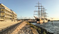 Veuillez noter que l'ensemble du complexe est encore en construction. Votre Promenade Villa est bien sûr terminée, mais peut encore être retravaillée. Les activités récréatives ne sont pas terminées. mais vous pouvez déjà imaginer à quoi cela ressemblera ici une fois, quand tout sera complètement terminé. Ensuite, vous pourrez longer à gauche et à droite les rives de la Trave, reliées par deux bacs. Ce sera unique sur la côte baltique !