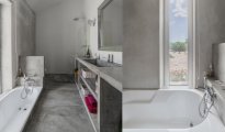 La troisième villa est parfaite, avec ses lits doubles, ses armoires faites mains et sa salle de bain moderne, sa grande douche ouverte et sa porte-fenêtre en verre.
