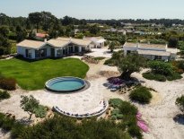 Location Villa Luxe Portugal Cote Lisbonne à Comporta, entièrement reconstruite en 2017 et située au cœur de 465 m² de pins et d'oliviers, avec des environs peuplés de magnifiques rizières. Cette propriété composée de trois villas, est un lieu de retraite parfait dans le Sud-ouest du Portugal, au sein de l'une des terres européennes les plus fréquentées en été : Comporta.