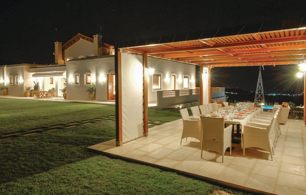 La maison de vacances dispose d'un très grand jardin avec suffisamment d'espace pour jouer au volley-ball ou au football, elle dispose également d'une belle salle à manger couverte, où vous pourrez déguster un dîner en plein air. Il dispose de deux piscines, une pour adultes et une autre pour jeunes enfants, où les clients peuvent admirer les fantastiques vues panoramiques sur les montagnes.