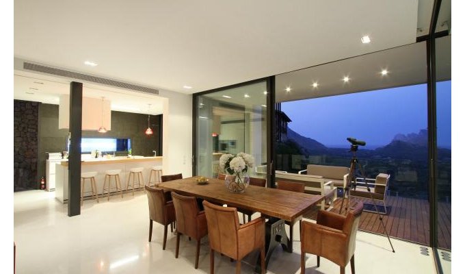 À partir du niveau inférieur se trouve une magnifique piscine à débordement entourée d'une terrasse en bois qui vous permettra de parfaire votre bronzage grace aux nombreux transats.