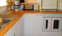 La cuisine est directement intégrée dans l’espace de vie . Petite mais fonctionnelle et parfaitement équipée en électroménager , vaisselle, ustensiles … Vous pourrez y faire une cuisine de vacances simplifiée, mais également préparer de délicieux repas plus élaborés !