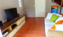 un grand séjour ouvert sur une terrasse couverte où vous pourrez vous retrouver à l’heure du Ti- punch, confortablement installés dans le salon extérieur puis pour partager un repas créole ou une langouste grillée au BBQ , avec vue sur la piscine !
