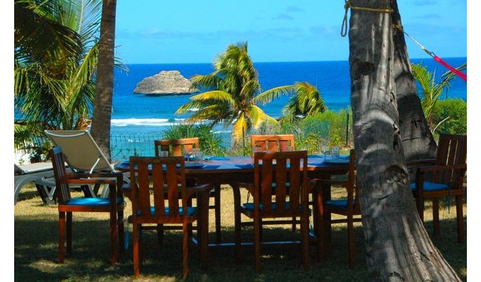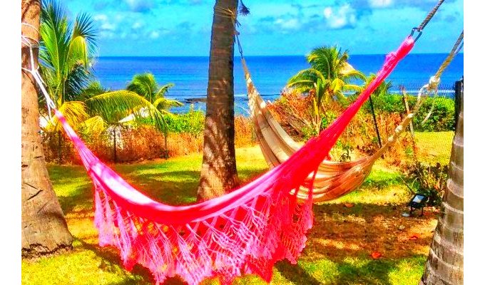 Des hamacs avec vue sur le rocher de l’Éperon et le célèbre spot de surf de la Gourde.