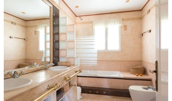 Location vacances Espagne Costa Blanca disposant d'un jardin, mobilier de jardin, clôture, terrasse, barbecue, fer à repasser, sèche-cheveux, chauffage pompe à chaleur, climatisations dans certaines chambres, piscine privée, parking extérieur même bâtiment, 1 Télévision.