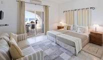 A l'étage, vous trouverez les deux chambres restantes. La chambre 4 est une chambre double principale avec un lit king-size et un accès à un balcon avec une vue imprenable sur la mer. La chambre 5 est une petite salle de bains jumelle qui a également un accès privé par une terrasse privée.