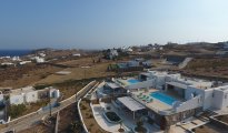 Ces villas au design cycladique de deux étages situées à Kalafatis, à Mykonos, se composent de deux propriétés identiques qui peuvent être combinées pour accueillir 20 personnes.