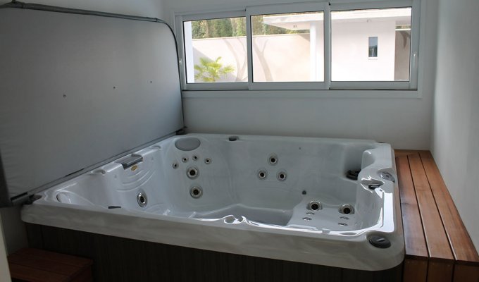Villa à 700 m de la plage, au calme dans la forêt. La maison comprend 4 chambres, 2 salles de bain, une piscine chauffée couverte par un abri sécurisé télécommandé, un jacuzzi intérieur ainsi qu'une grande terrasse bois 130m² environ.