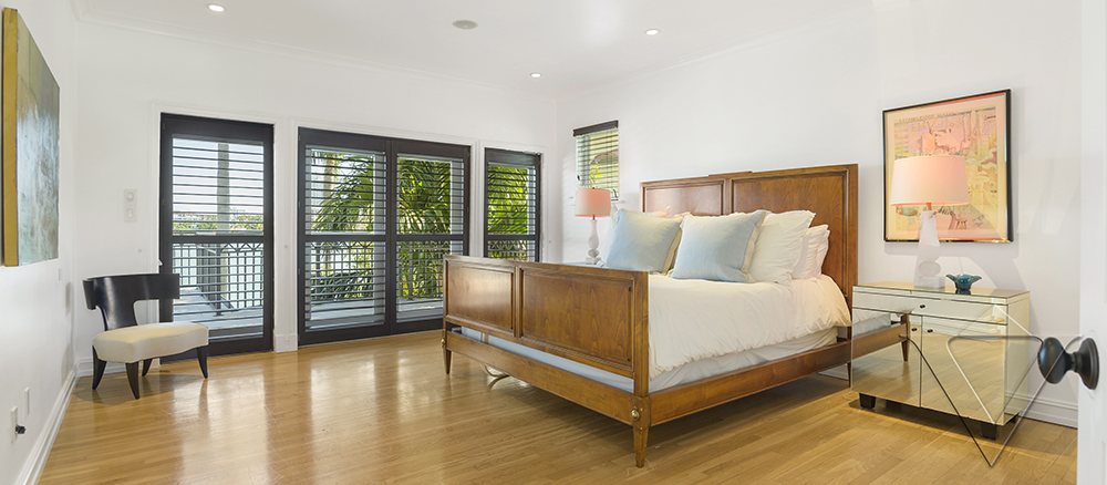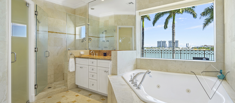 Venetian Islands Location Villa Luxe Miami Beach offrant cinq grandes chambres doubles et cinq salles de bains spacieuses.