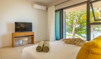 Elle est équipée de la climatisation, d'une salle de bains privée et d'une cuisine comprenant un réfrigérateur, un four, un lave-vaisselle et un four à micro-ondes.