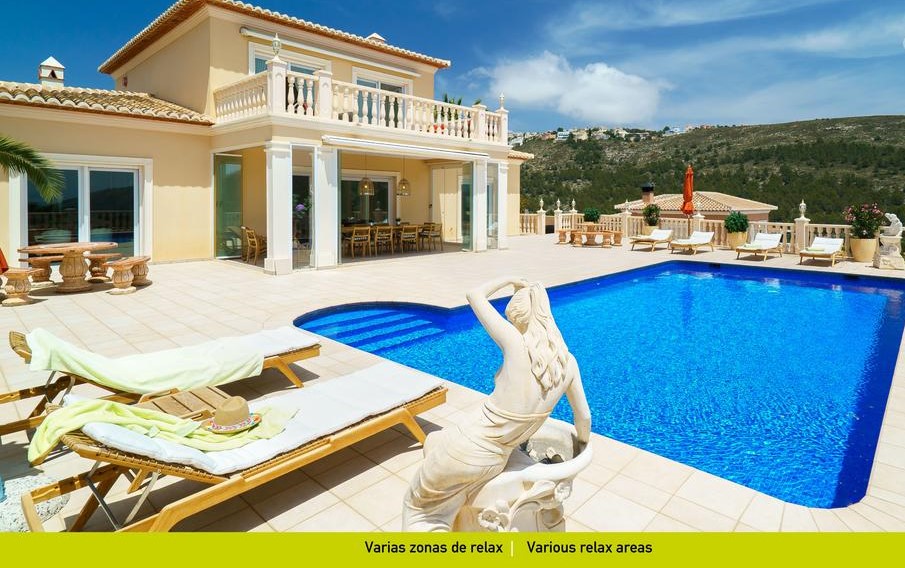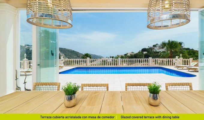 Cette villa se distingue par son standing et la qualité des aménagements spacieux . Ses 4 chambres disposent de l'air conditionné et 2 d´entre elles d'une salle de bain en suite. La propriété offre une spacieuse terrasse avec piscine privée depuis laquelle vous pourrez jouir d´une spectaculaire vue sur la vallée de Moraira jusqu´à la mer qui se distingue à l´horizon.
