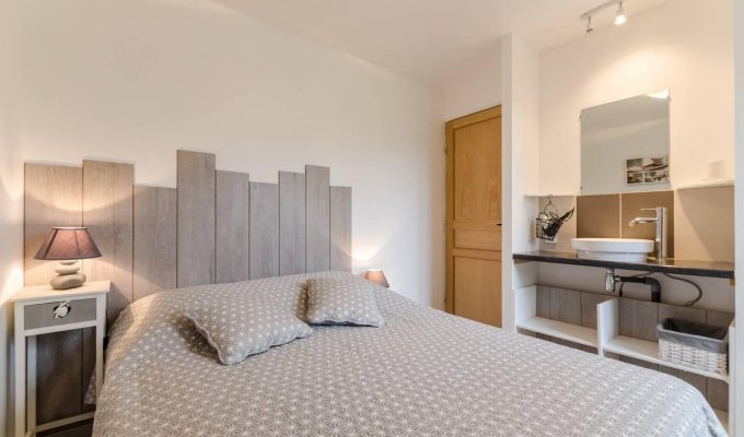A l'extérieur, vous profiterez d'une terrasse avec salon de jardin, parasol, transats, barbecue, d'un abri voiture, d'un parking privatif, d'une cour et jardin clos. Toutes les charges seront comprises dans le prix de votre séjour, lits faits à l'arrivée, ménage de fin de séjour inclus.