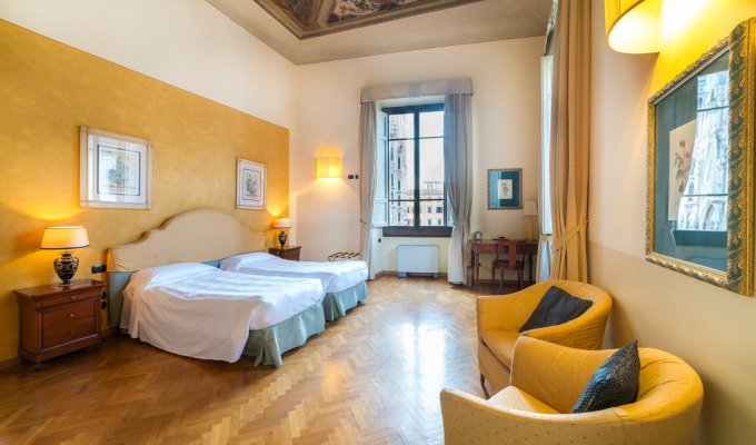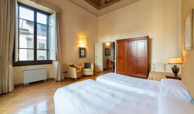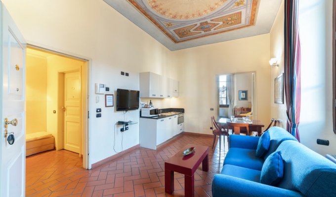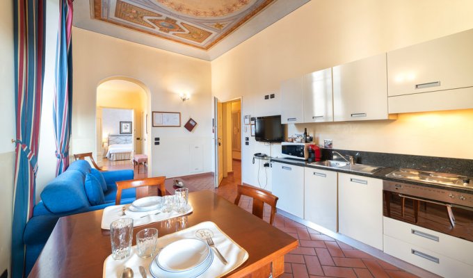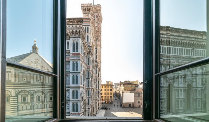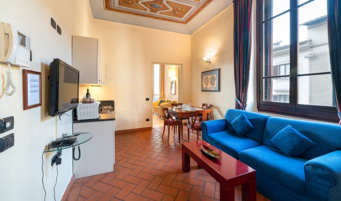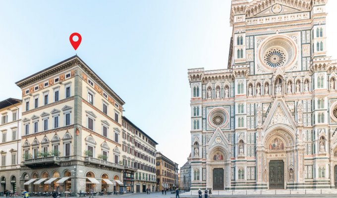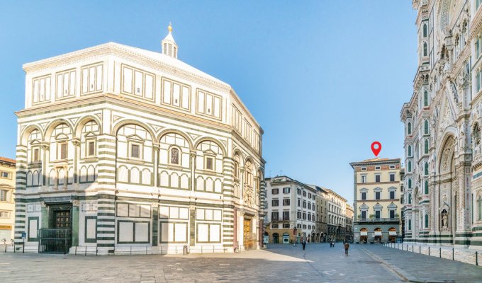 Ce bel appartement de vacances dans un immeuble imposant du centre historique de Florence  se trouve à seulement 15 mètres de la cathédrale Santa Maria del Fiore, d'où vous pourrez profiter de la vue magnifique directement depuis le logement. L'appartement se trouve au troisième étage et se compose d'un salon avec coin cuisine, de deux chambres et d'une salle de bain. Ascenseurt. Ce logement est également adapté à un séjour d'affaires en raison de la bonne connexion WIFI et de son emplacement.
