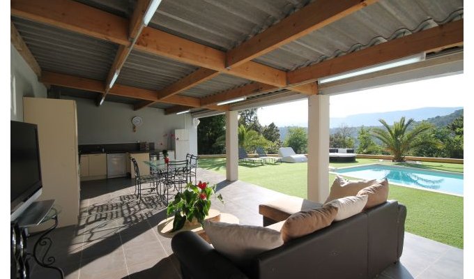 Sur Nice, dans le quartier résidentiel de Saint Pancrace, belle villa située sur un terrain de 1Ha en bordure de forêt dont 2000m² aménagés. Piscine privée (8m x 4m, Profondeur 150 – Alarme) avec douche extérieure. Pool house avec cuisine équipée, TV, BBQ. Trampoline, Ping-pong, terrain de pétanque. Parking pou 4 voitures. Commerces, supermarché 100m. Centre-ville de Nice 8 km. Mer et plage 9 km.