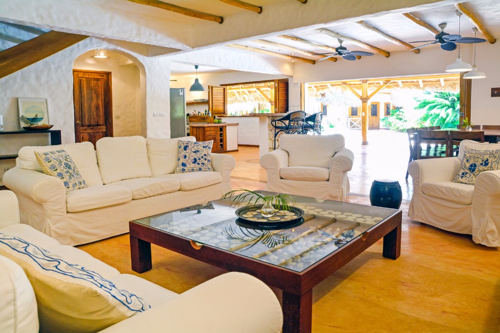 Située dans une résidence de luxe au milieu des cocotiers, sur la plus belle plage de Las Terrenas, playa Coson, une villa indépendante de style caraïbe, de 400 m² avec piscine, jacuzzi entourée d'un jardin tropical, à 80 mètres de la plage.