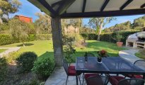 La propriété, qui peut accueillir jusqu'à 8 personnes, est totalement de plein pied et se compose d'un grand espace de vie avec salon meublé de canapés confortables et d'une télévision, d'un coin repas et d'une cuisine entièrement équipée. Le salon ouvre sur la véranda et le jardin avec barbecue. La zone nuit se compose d'une chambre double avec salle de bain en suite avec douche, d'une deuxième chambre avec trois lits et d'une troisième chambre avec trois lits et salle de bain en suite. Une autre salle de bain familiale avec douche complète l'organisation de l'intérieur. La villa est entourée d'un beau jardin avec pelouse où se trouve également un espace avec des places de parking couvertes supplémentaires.