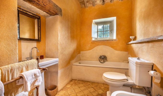 Le propriétaire, architecte et designer d'intérieur italien renommé, a restauré la villa dans le respect total de la tradition toscane et l'a meublée avec une combinaison impressionnante de meubles qu'il a personnellement dessinés et d'anciens meubles. Les photos de cette propriété ont été publiées au fil des ans dans de nombreux magazines Interior. Les anciens clients ont beaucoup apprécié l'intérieur de la villa, en particulier ses salons spacieux et sa grande table à manger.