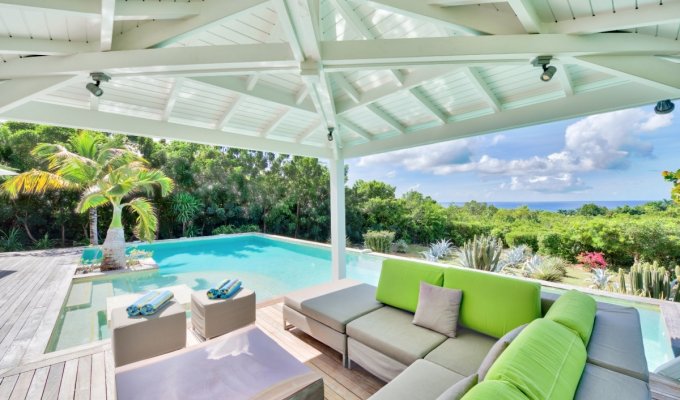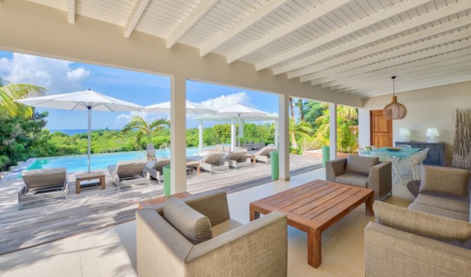 La villa est une spacieuse et élégante villa de trois chambres située dans le quartier exclusif des Terres Basses à St Martin partie française. Cette nouvelle villa conçue avec goût offre une vue sur l'océan et le coucher du soleil et se trouve à seulement deux minutes en voiture des plages de Baie Longue ou de Plum Bay.