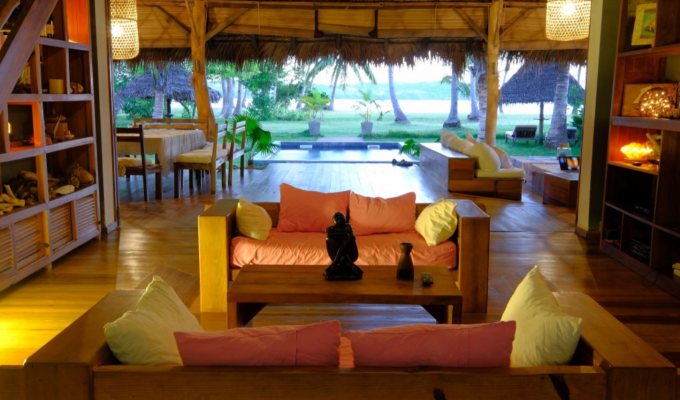 Nosy bé Madagascar sur la presqu'ile de BAOBAB (endroit sécurisé) cette villa pleine de charme située en 1ere ligne à 25m de la plage, vous permettra de passer de superbes vacances !