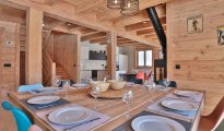 Il offre cinq chambres avec salle de bain privative, plus un petit dortoir sous charpente idéal pour les enfants, ainsi qu'un espace SPA avec Jacuzzi et Sauna, à l’atmosphère chaleureuse où l’eau et le bois ancien appellent à un retour aux sources. La terrasse protégée du vent et sa grande table extérieure permettent de profiter pleinement du soleil de Serre Chevalier.