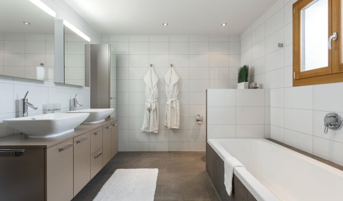 La location a 4 chambres à coucher, 4 salles de bain et 1 toilette pour les invités, réparties sur 3 étages. Le voisinage d'endroits pour faire du shopping, d'activités sportives et d'endroits pour sortir rend cette location de vacances un logement idéal pour passer les vacances en Suisse avec votre famille ou vos amis.