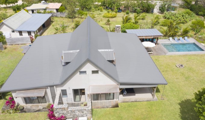 Elle a été récemment construite et est luxueuse à tous points de vue. La villa est située au Morne, sur un domaine familial de 2000 hectares, avec non seulement son jardin privé mais aussi de vastes pelouses pour se détendre ou pour que les enfants puissent jouer.