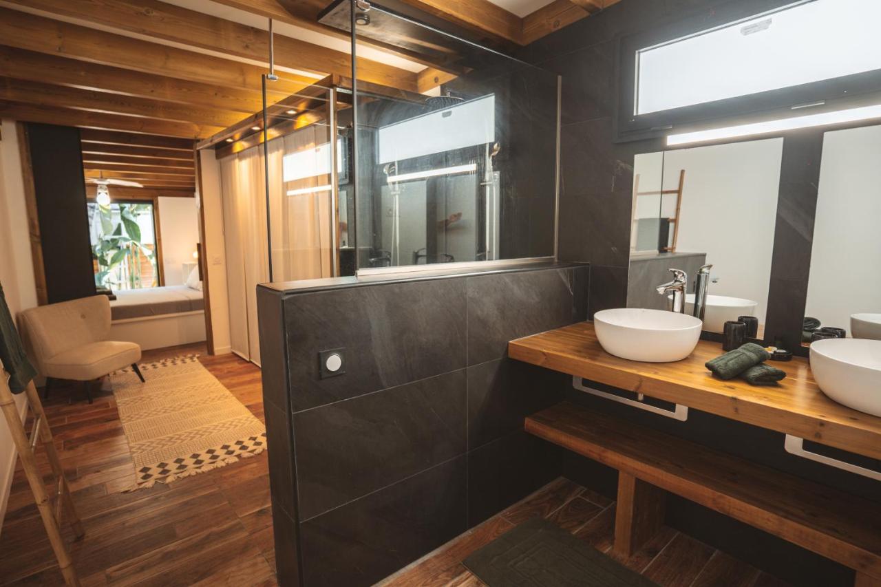 Au rez-de-chaussée vous trouverez 3 chambres doubles dont 2 climatisées et 1 avec brasseur d'air, avec un lit x160 qui donnent accès au jardin dont une en suite parentale avec sa propre douche à l'italienne, évier vasque et WC . Une 4eme chambre climatisée, avec un lit superposé et une chauffeuse convertible au besoin pour un couchage supplémentaire qui donne également accès à l'extérieur. La villa possède 1 salle de bain avec deux vasques, douche à l'italienne, machine à laver et un WC séparé.