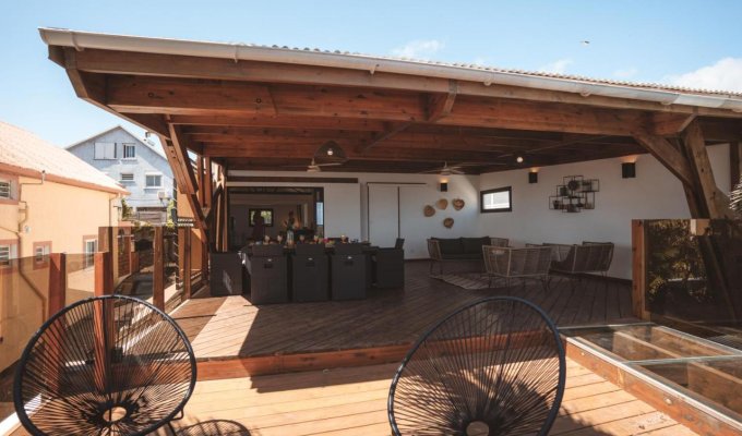 Cette villa moderne située à Terre Sainte à Saint-Pierre à seulement 450m de la plage de Saint-Pierre, possède un superbe espace extérieur doté d'une piscine chauffée et d'une vue mer à couper le souffle.