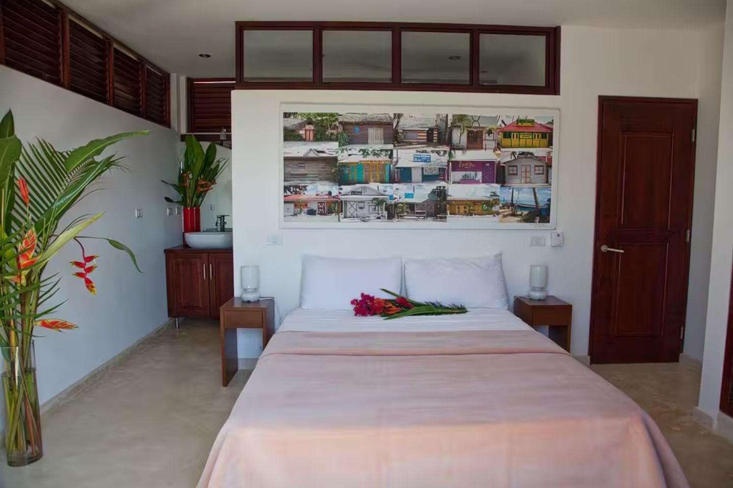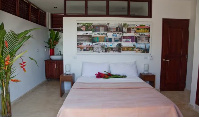 Sur la gauche, la Master Suite qui spacieuse et aérée s’ouvre sur une grande terrasse privative d’où vous pourrez contempler en toute quiétude l’immensité de l’océan. Joliment décorée, elle est composée d’un dressing room, d’une grande salle de bain et d’un lit King Size.