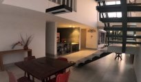 Maison de style moderne, environnements ouverts et intégrés, bien éclairée, avec des plafonds à double hauteur, dans une résidence fermée et un garage au niveau inférieur.