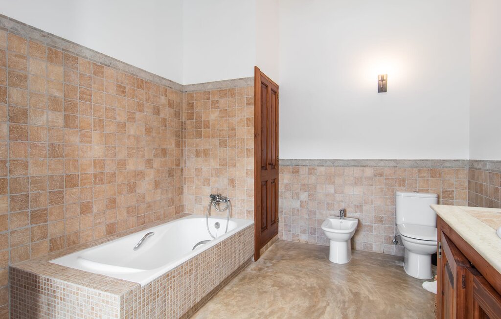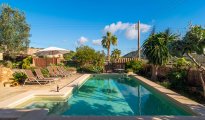 Une oasis de verdure : flanquée de deux grands palmiers, d'un vieil olivier noueux et de toutes sortes d'autres végétations méditerranéennes, la ferme Can Joan Roca est située dans le magnifique sud de l'île et sait comment satisfaire les besoins de vos vacances les plus divers. Cela est dû en partie à la jolie maison typiquement majorquine et grâce à plusieurs terrasses: chaudes et ensoleillées ou agréablement ombragées, le tout avec une vue magnifique sur le jardin et la piscine: Vous trouverez rapidement votre endroit préféré. Peut-être préférez-vous vous détendre sur l'une des chaises longues au bord de la piscine ou peut-être préférez-vous la cuisine extérieure accueillante couverte avec table à manger ? Vous pourrez vous asseoir à côté de la maison, qui dispose également d'une alcôve couverte confortable et aérée sur le côté. En plus de la piscine d'accès facile avec ses marches, il y a aussi une douche extérieure pratique après votre baignade.