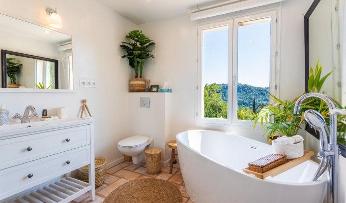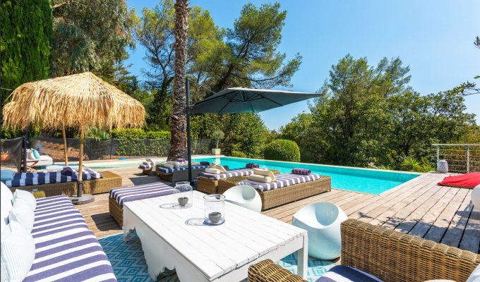 Située à La Colle sur Loup avec vue sur haut les gorges du loup, La villa est une magnifique villa de location saisonnière de 185 m2 sur un beau terrain de 2500m2 , cette villa est entièrement climatisée avec une belle piscine à débordement de 13 x 8 metres , terrain de pétanque, table de ping pong , plancha électrique tout pour reussir de belles vacances en famille ou entre amis.