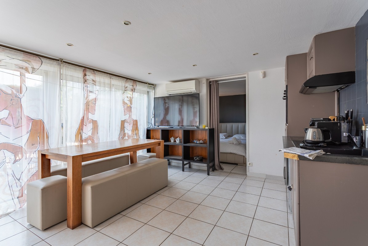 Une belle piscine, un jardin paysager avec coin barbecue, transats et salon de jardin devant chaque appartement.