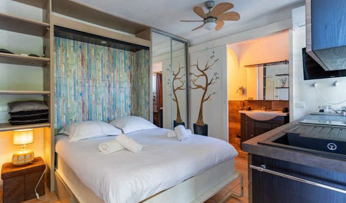 Au rez-de-jardin, 5 appartements équipés soit en studio soit en 2 pièces pouvant accueillir chacun 2 personnes et une salle de bain avec wc dans chacun, une grande terrasse longeant la propriété.