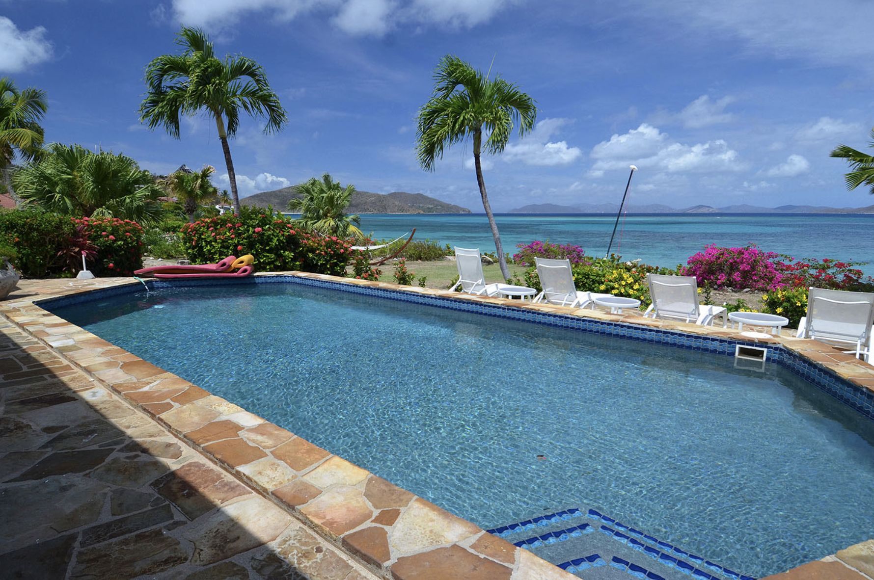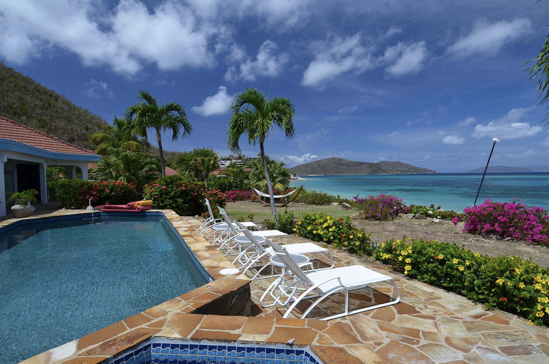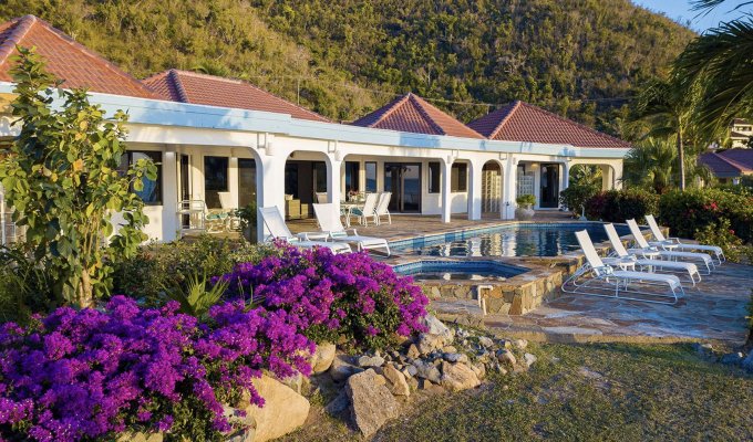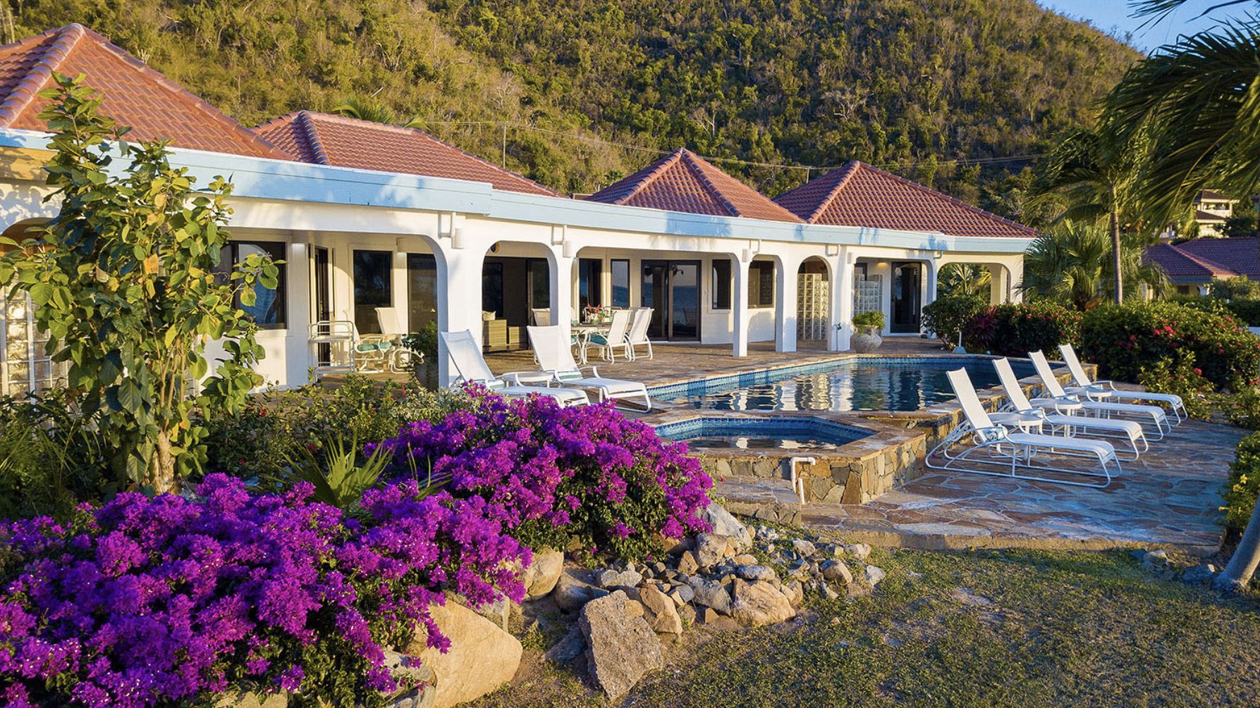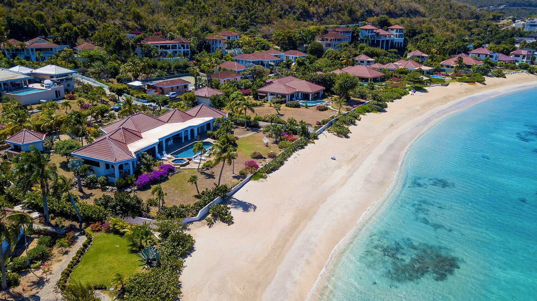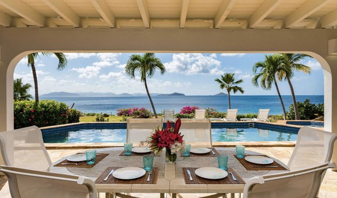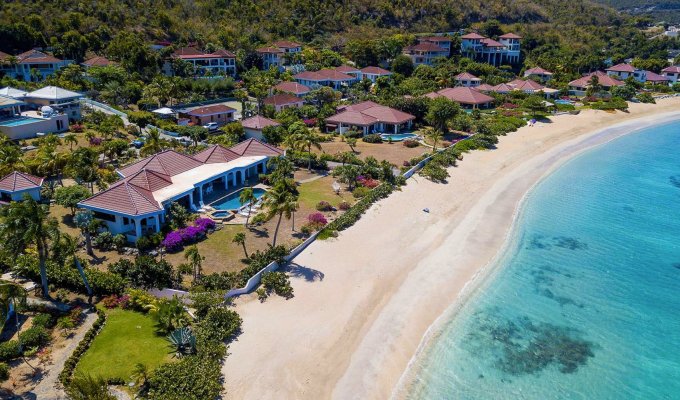 BVI Location villa Virgin Gorda sur la plage de Mahoe Bay avec piscine privée, jacuzzi, personnel et chef