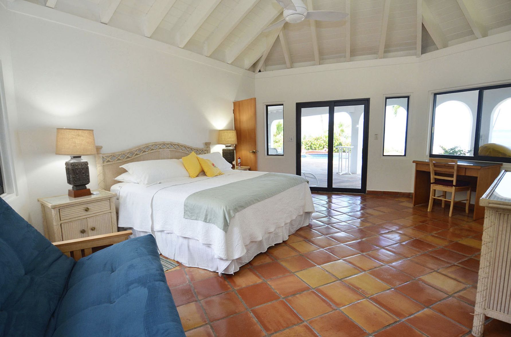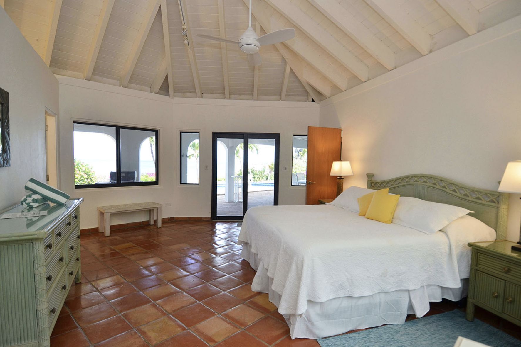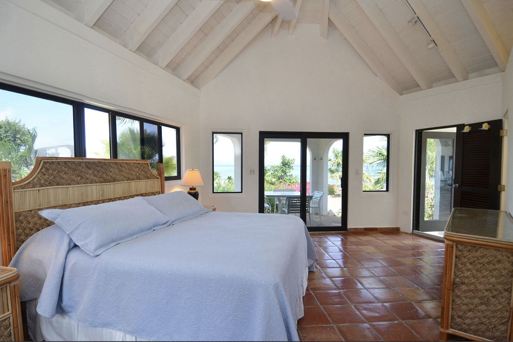 Chaque chambre est conçue comme une suite parentale, avec salle de bain attenante, climatisation, double vue sur l'océan et accès direct à l'extérieur. La villa offre tout le confort moderne, notamment une grande salle familiale et salle à manger, une cuisine professionnelle, une télévision avec magnétoscope et chaîne stéréo, une vaste bibliothèque de films et de livres, l'internet haut débit ADSL et la télévision par satellite avec HBO et Showtime.