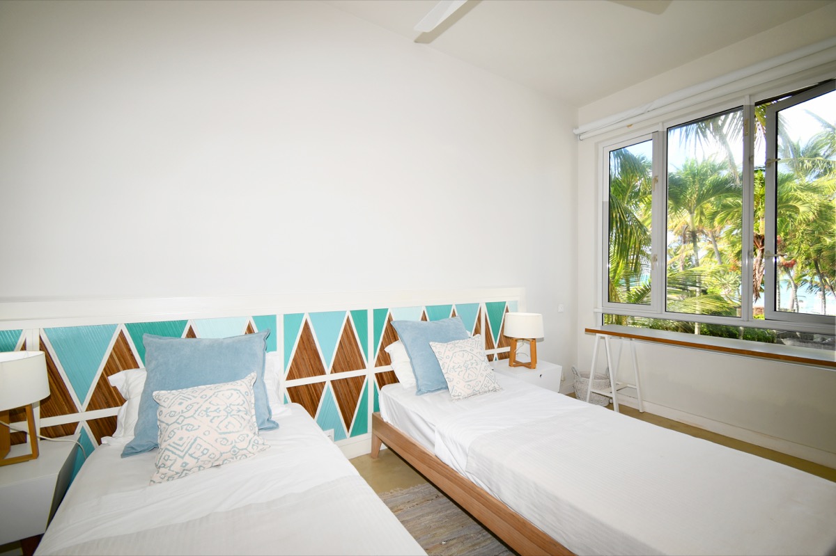 Chambre 3 : Vue sur le jardin et la mer, 2 lits simples, salle de bain privée