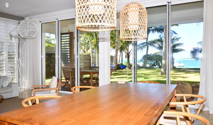 Location Villa sur la plage avec piscine à Trou d’Eau Douce Ile Maurice, offrant un accès direct à la plage, une vue sur la mer et une intimité totale au bord de votre propre piscine. Cette spacieuse maison de vacances est conçue pour le confort et la détente, tout en gardant le charme authentique de l’île Maurice. De votre porte, le bateau vient vous chercher jusqu’à la célèbre île aux Cerfs et les cascades voisines, faisant de cette villa le point de départ idéal pour l’aventure et la détente.