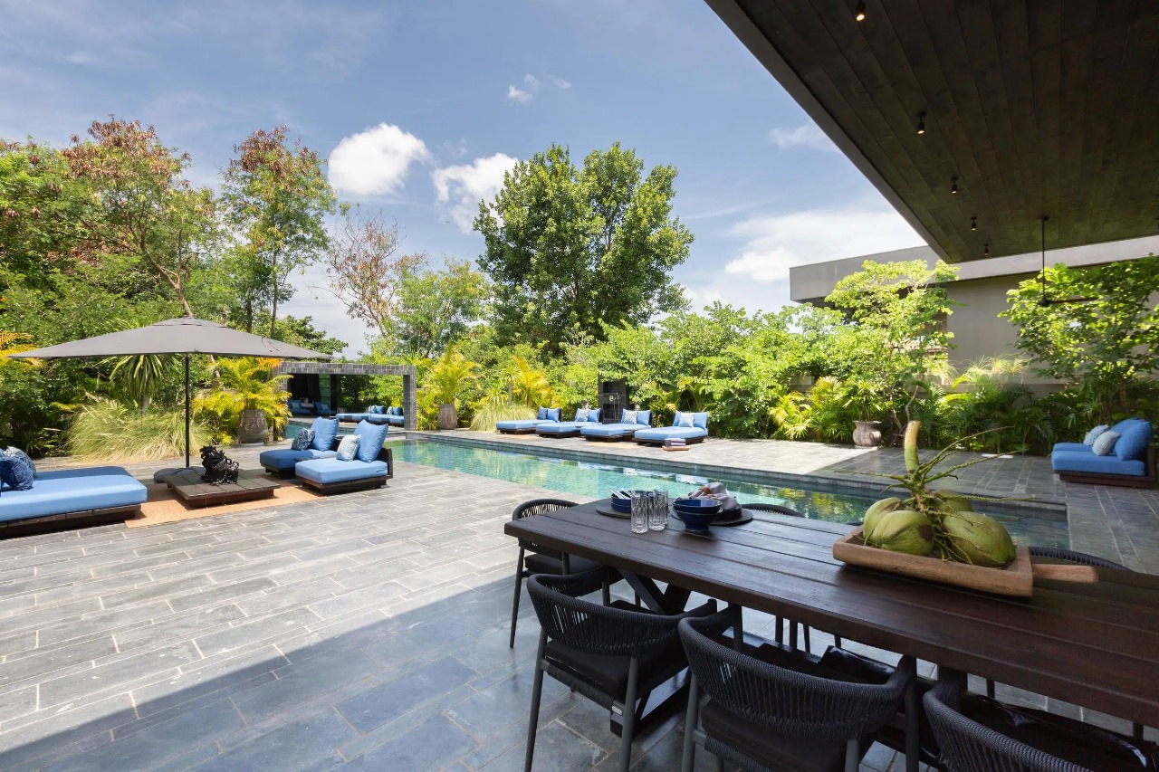 Chaque villa dispose de sa propre piscine : 15 m pour la villa 4 chambres et 12 m pour la villa 3 chambres, au cœur de jardins tropicaux avec transats et zones ombragées
