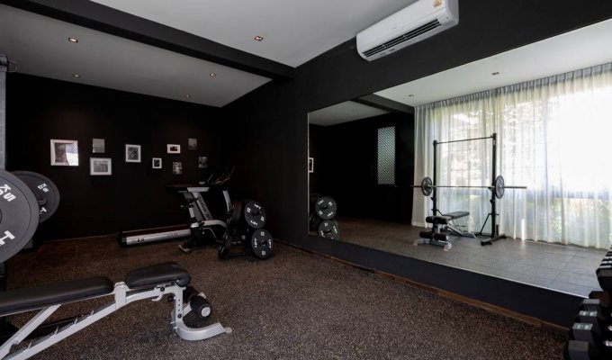 Salle de sport climatisée partagée et possibilité d’organiser des massages, séances de yoga ou soins bien-être directement dans la villa.