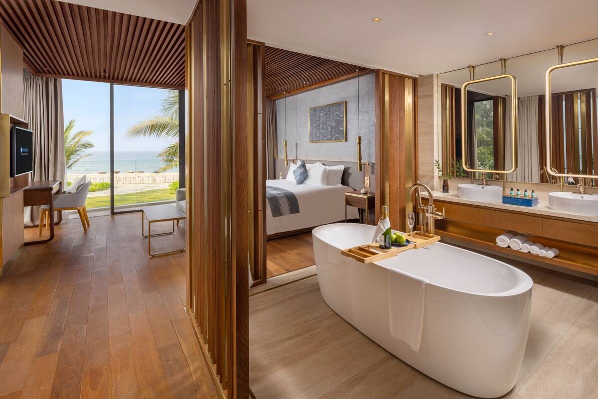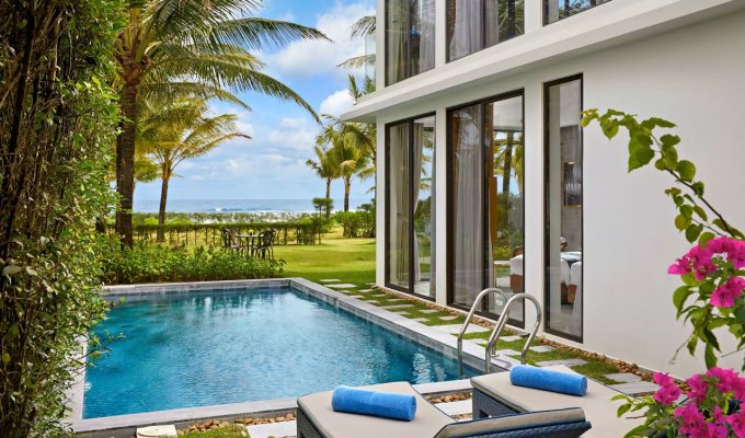 Les villas sont un excellent choix. Bel emplacement à côté de la mer, transport pratique, situé sur le chemin de Hoi An depuis Da Nang. Juste à côté du principal complexe de divertissement du Vietnam : le parcours de golf Cocobay et Mongomelink. Le complexe dispose de 72 villas au design moderne, élégant et luxueux répondant à des normes 5 étoiles : piscine 4 saisons, restaurant, centre de conférence, salle de sport, sauna, spa, bar...