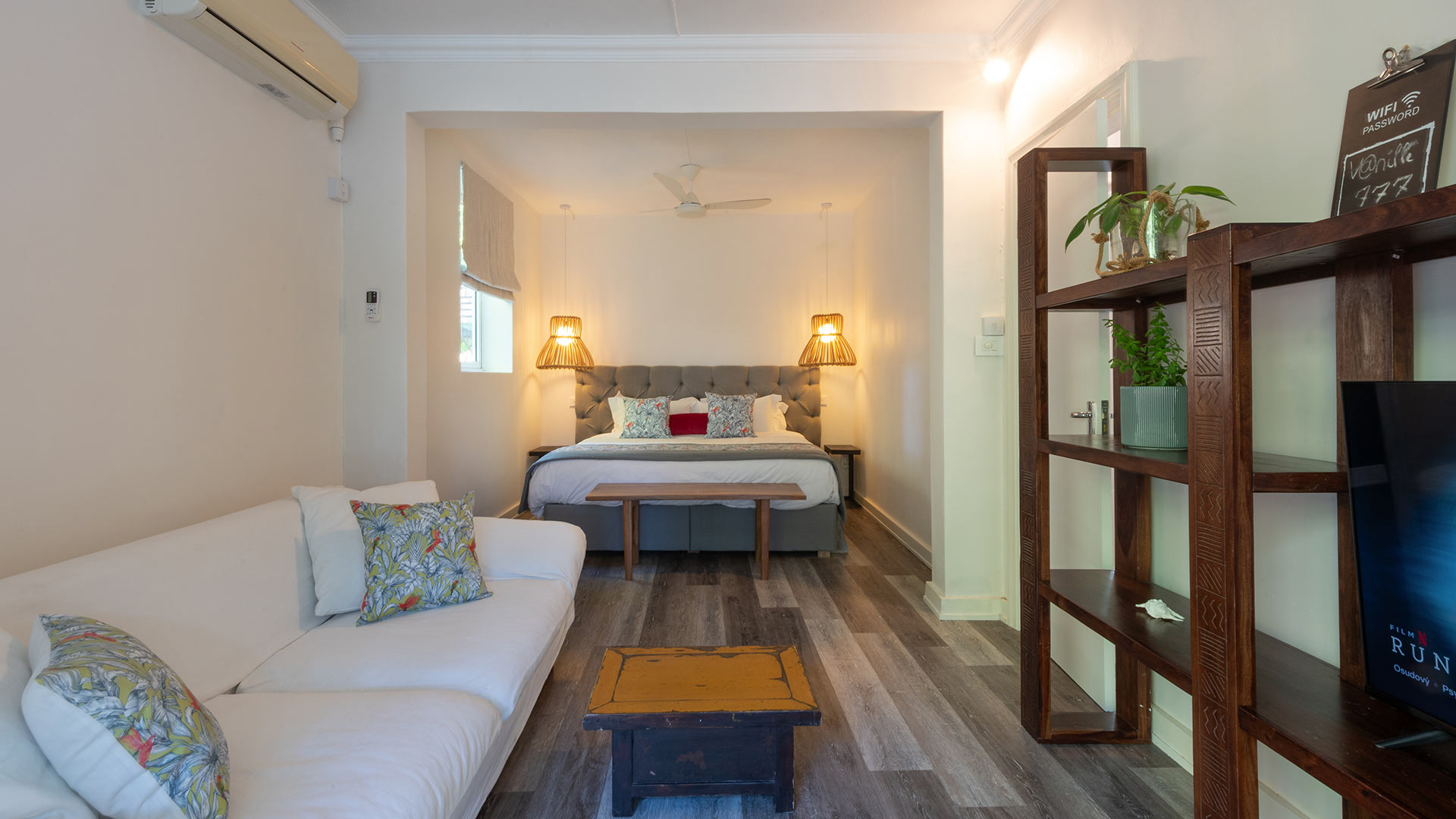 En complément, un bungalow indépendant comprend une cinquième chambre (lit king size), une salle de bain, un salon et une kitchenette. Idéal pour les invités ou les membres de la famille souhaitant davantage d’intimité.