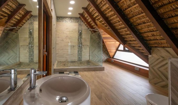 6 chambres climatisées + 4 salles de bains élégantes avec douche, baignoire spa et linge de toilette fourni