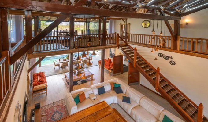 Avec ses 420 m² d’espace de vie, la Villa séduit par son confort et son raffinement. Elle comprend 6 chambres climatisées, un vaste salon lumineux, et une cuisine entièrement équipée (réfrigérateur, lave-vaisselle, machine à café, four, barbecue…). Tout est pensé pour que vous vous sentiez comme chez vous, avec une touche d’exotisme en plus.